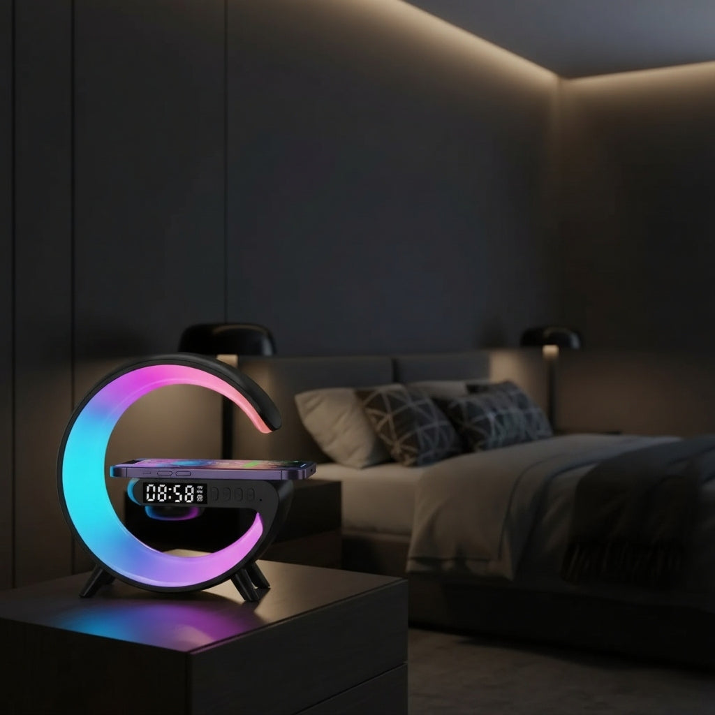 Transforma tu rutina diaria con una estación de carga que organiza, ilumina y llena tu espacio de música.
